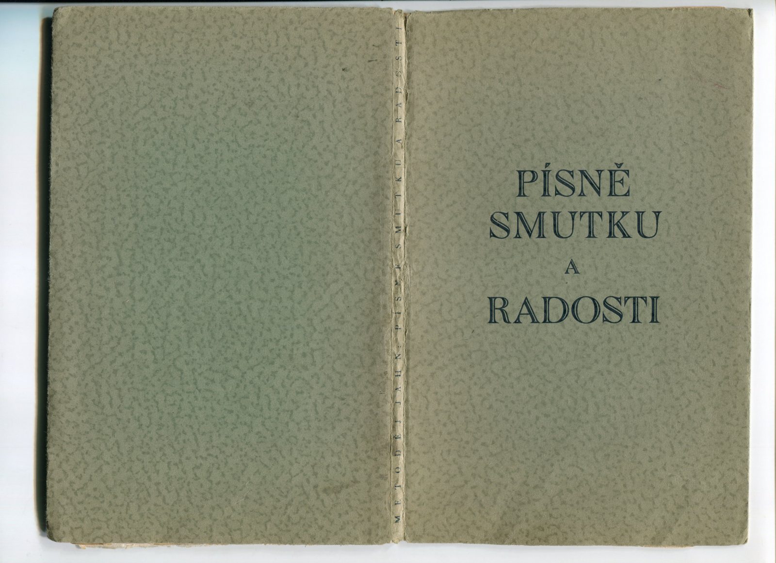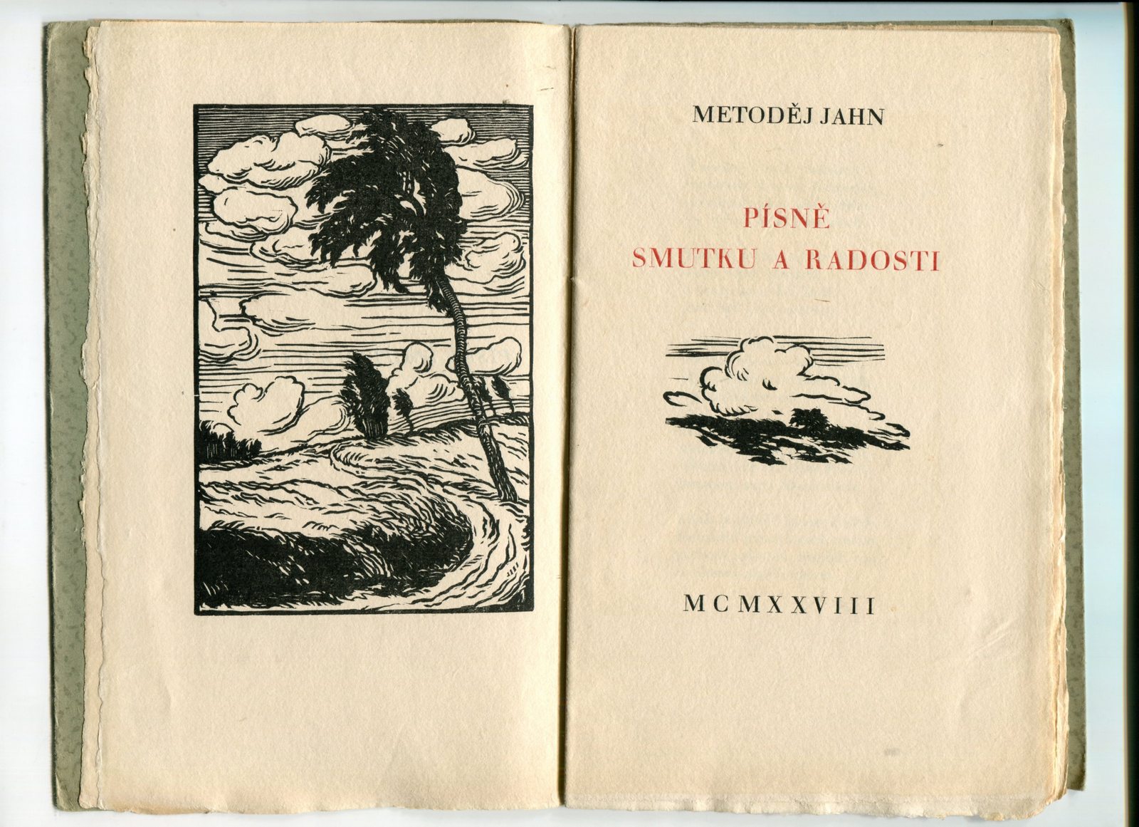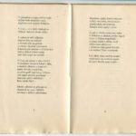 Vybraná ukázka pochází z mé oblíbené „valašské“ bibliofilie Písně smutku a radosti, kterou v Hranicích vydal známý bibliofil a vydavatel Josef Hladký jako čtvrtý svazek edice Amfora. Svazek byl vydán k desátému výročí republiky v nákladu 300 výtisků a dřevoryty vyzdobil Vladimír Šindler. Písmem Walbaum vytiskl olomoucký tiskař Josef Špaček na moravském ručním losínském papíru. Sáňka 1565.